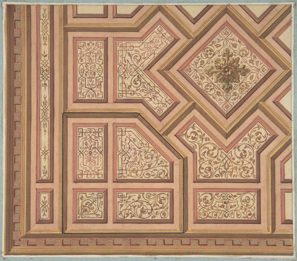 This vibrant design for a ceiling decoration was created by Jules-Edmond-Charles Lachaise. Although the exact date is unknown, Lachaise was born in 1897, so it likely comes from the early 20th century. The repeating geometric patterns are characteristic of Islamic art, specifically its use in architectural ornamentation, and the design suggests a strong awareness of non-Western artistic traditions. France, with its colonial history, would have made such forms accessible through collections and publications. Lachaise's design can be seen as part of a broader movement within Western art to find inspiration outside of its own traditions. However, this appropriation also raises questions about cultural exchange and power dynamics, and the way Western artists engage with non-Western aesthetics. To fully understand this piece, one might research the history of Islamic art in France, and the circulation of design motifs during this period. Ultimately, this ceiling design reminds us that art is always embedded in a complex web of social, cultural, and historical contexts.