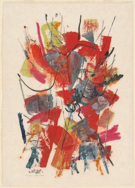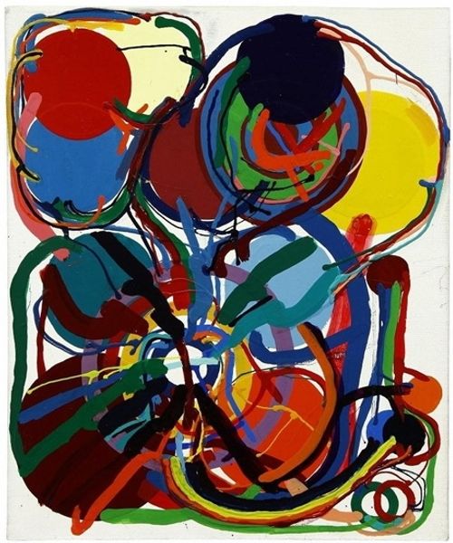 Wassily Kandinsky made this “Composition in red, blue, green and yellow” with watercolor, and for me it's all about how you can see the process. I mean, check out the way the colors bleed and blend, like he’s letting the water do its thing. It’s as if he’s saying, "Hey, art is a conversation between me and the materials!" The colors, they're not just sitting there, they're kinda floating, interacting, creating all these little moments. The surface is so alive and buoyant! Look at the blue blob at the bottom right. It's solid but also seems to be in motion, like a drop of ink expanding in water. That area reminds me of Miro, another artist who knew how to make a painting feel like it was constantly in the process of becoming. Kandinsky’s work isn’t about answers. It’s about the questions, the possibilities, the sheer joy of seeing what happens when you let things flow.