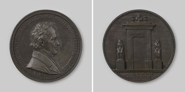This bronze medal, commemorating the death of Cornelis Richard Anton van Bommel, Bishop of Liège, was created in 1852 by Leopold Wiener. Its materiality is key to understanding its purpose and context. The choice of bronze, a relatively inexpensive metal, allowed for the mass production of this memento. The medal was likely made using a casting process, where molten bronze was poured into a mold, a technique that enables the creation of multiple identical copies. One side shows a profile portrait of the Bishop, while the other depicts the interior of a cathedral. The intricate details of the architectural rendering demonstrate Wiener's skill as a medalist, but also the possibilities of industrial production. Medals like this one occupied a space between fine art and industrial design, circulating widely and shaping public memory. This kind of object is a testament to the social and political forces at play in 19th-century Europe, and how these were mediated through everyday objects.