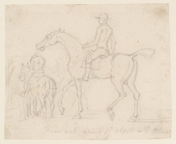 Teutwart Schmitson made this pencil drawing of a rider with a fallen horse sometime in the 19th century. The image captures a fleeting moment of disruption. Consider the social context in which Schmitson was working. Germany in the 1800s was a society undergoing rapid change, with industrialization and urbanization transforming traditional ways of life. Equestrian culture, once the domain of the aristocracy, was becoming increasingly accessible to the middle classes. This drawing, with its focus on a rider unseated from his horse, may be a subtle commentary on the destabilization of social hierarchies in this era. The rider is formally dressed, with a top hat, this uniform hints at a certain social expectation, or aspiration, as the modernizing population of Germany began to adopt the customs of the upper classes. Art historians often turn to visual culture, from fashion to sport, to understand the nuances of social change. By examining this drawing in relation to the broader social and cultural history of 19th-century Germany, we can gain a deeper appreciation of its significance.