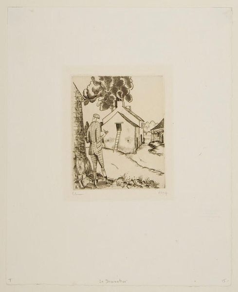 Editor: This is Robert John Gibbings' "Charm of Birds: Illustration Seven." It's a lovely, small wood engraving. The stark contrast between the black ink and the paper creates a very graphic quality. What stands out to you? Curator: The process of wood engraving itself is crucial. Gibbings' labor, meticulously carving away at the block, dictates the final image. The availability and cost of the materials, the wood, the ink, the paper; these factors all shape the artwork's creation and dissemination. Even the act of printing and distribution must be considered. Editor: So, it's not just the image itself, but also the history of its making? Curator: Precisely. By analyzing the materials and the means of production, we gain insight into the social and economic context in which this artwork was created and consumed. Editor: I’ve never thought about a work of art that way. Curator: Understanding the means of production helps us see art not as a singular, precious object, but as something embedded in a larger system.
