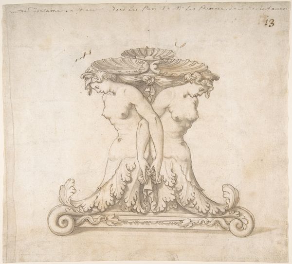 Giovanni Battista Naldini made this pen and brown ink design for a table in Italy during the late 16th century. This drawing presents the highly ornamented end of a table featuring hybrid figures and heraldic symbols. Drawings like this one offer a glimpse into the cultural world of Renaissance Europe, where the design of even everyday objects could communicate status and sophistication. The inclusion of sphinxes, winged figures, and elaborate foliate patterns reflects the period's fascination with classical antiquity, embodying the elite fashion of collecting antiquities. The prominent heraldic eagle suggests that this table was intended for an aristocratic or even royal patron, for display in domestic settings. To fully understand Naldini's work, scholars consult a range of documents, from inventories of aristocratic collections to treatises on design and heraldry. These resources help reveal the social context of the artwork, emphasizing how art is always embedded in its time.