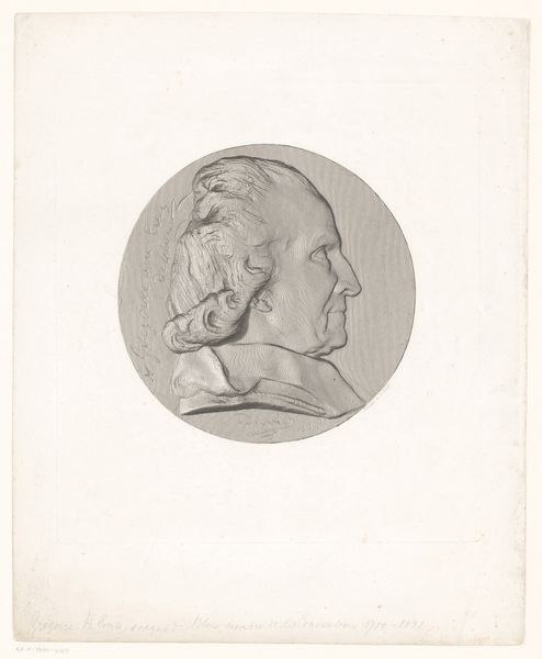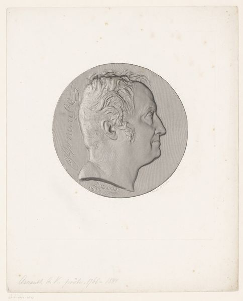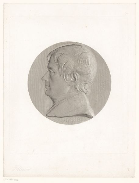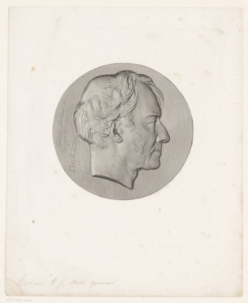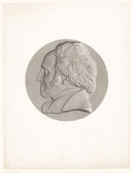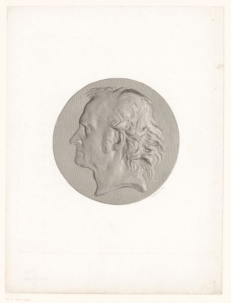 Achille Collas made this print of a portrait medal of Jean Reynaud, using a mechanical engraving process called taille-douce anaglyptique. Collas wasn't just an artist, but also an inventor, and this technique epitomizes the fusion of art and industrial production in the 19th century. It was a method of taking a three-dimensional object – in this case, a portrait medal – and translating it into a highly precise two-dimensional image. The process involved using a specialized machine to trace the contours of the medal, which were then transferred onto a printing plate. The result is this amazing level of detail, almost photographic in its accuracy. What's fascinating is the sheer labor and precision involved. Each line would have been meticulously incised, demanding incredible skill. This print is not just a portrait; it's also a document of a particular moment in the history of reproductive technologies, where art and industry became deeply intertwined, reflecting broader shifts in labor, production, and consumption during the Industrial Revolution.