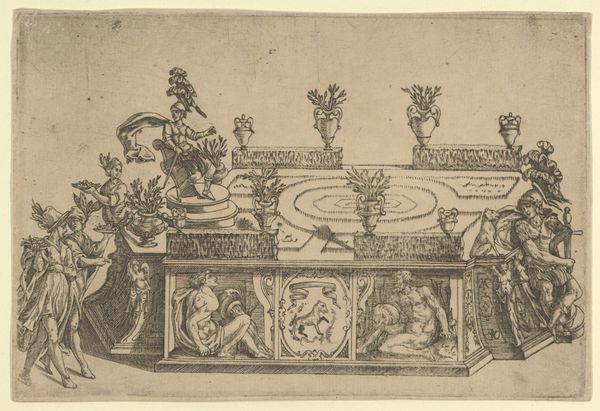 This undated drawing proposes a design for a lavish silver centerpiece. Though we don't know the artist, we can see that they were fluent in the visual language of luxury. The design is packed with classical motifs: reclining nudes, urns, garlands and putti all rendered in meticulous detail. These references to antiquity would have signaled the patron’s refined taste and elevated status. Silver objects like this were not merely decorative; they were potent symbols of wealth and power. We might ask: who was this centerpiece intended for? A royal court? An aristocratic family? And what kinds of social rituals would it have been used for? To answer these questions, we can look to surviving examples of silverwork from the period. Examining household inventories and etiquette manuals can also reveal the role that objects like this played in constructing social hierarchies. Ultimately, this drawing reminds us that even seemingly innocuous designs can tell us about the social and institutional forces that shaped their creation.