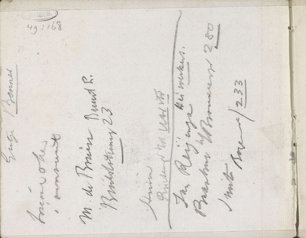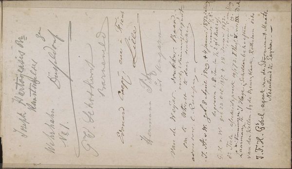 This is a page of ‘Studie’ by Antoon Derkinderen, created at an unknown date. Derkinderen was a Dutch artist operating at the turn of the 20th century. In this work, the artist has combined handwritten text with geometric diagrams, almost like a personal notebook page. The writing seems to mix personal reflections, calculations, and possibly notes related to cartography, mathematics, and astronomy. The intersection of these diagrams and handwriting can evoke a sense of intellectual pursuit and personal discovery. Derkinderen’s work represents a time when science and art were not so far apart, and the artist could explore both to understand the world. The page provides an intimate glimpse into the mind of an artist deeply engaged with the intellectual currents of his time, reflecting the period's emphasis on rational inquiry and its intersection with individual expression.