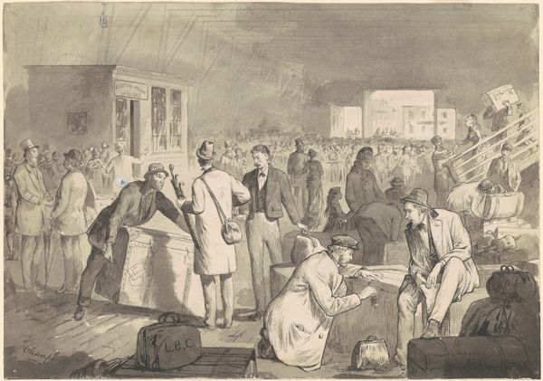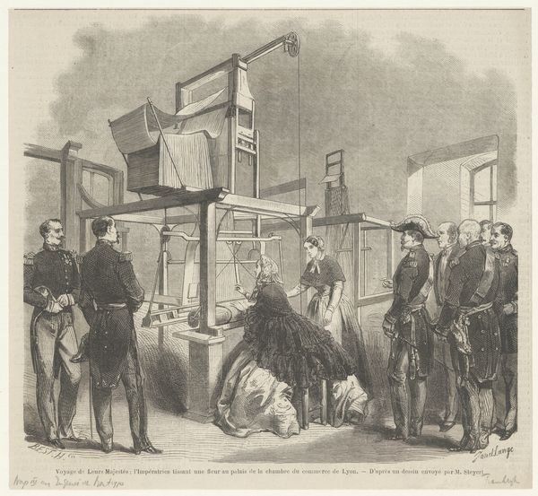 Jean Ignace Isidore Gérard Grandville created this lithograph, "Aanval van de Franse overheid op de vrijheid van drukpers" which translates to "Attack by the French government on the freedom of the press". The composition is a study in controlled chaos. The eye is immediately drawn to the center, where the printing press stands as a symbolic bastion, though it's being violently besieged. Grandville masterfully uses a monochromatic palette to heighten the drama, relying on stark contrasts to define forms. The aggressive diagonals formed by the soldiers' weapons and the fleeing figures inject a sense of dynamism, disrupting any semblance of order. The lithograph employs a semiotic language of conflict. The broken equipment and the fallen flag act as potent signifiers of the suppression of free expression. The artist uses structural oppositions, such as order versus disorder, and freedom versus oppression to reinforce the print's narrative. Grandville's work functions as a socio-political critique, using form to challenge established power structures. It highlights the press as a battleground for ideology.