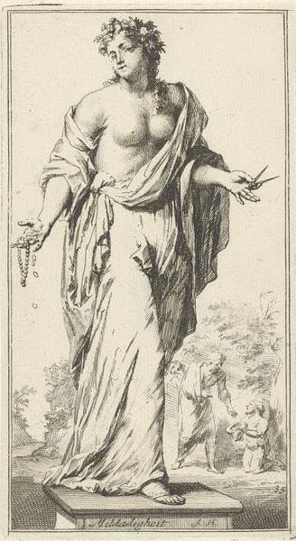 Arnold Houbraken created this print, Personification of Time, using etching. This is an intaglio process, where the artist covers a metal plate with a waxy, acid-resistant ground, then scratches an image into the ground with a needle. The plate is then bathed in acid, which bites into the exposed metal. Here, Houbraken carefully controlled the strength of the acid, and the time of submersion. The longer a line was exposed, the deeper and darker it would appear when printed. This print’s visual impact comes from the density of lines. The close-packed hatching gives form to the figure, and the contrasting areas of light and shadow lend the allegorical scene drama. Consider the labor involved in creating such a print. From the preparation of the plate, to the skillful scratching of the design, to the controlled use of acid, every step requires expertise. This was not just a mode of artistic expression, but an artisanal trade, demanding meticulous skill and precision. By attending to this process, we can appreciate how knowledge and skilled labor are imbued in the image.