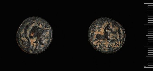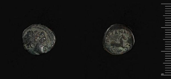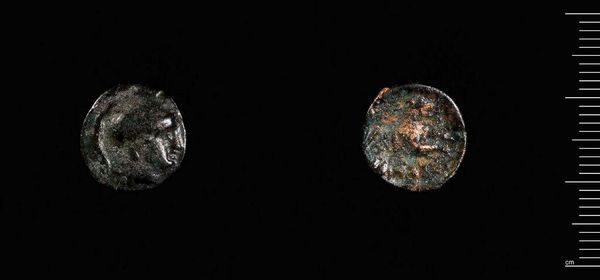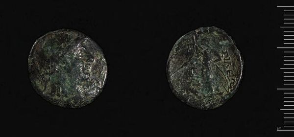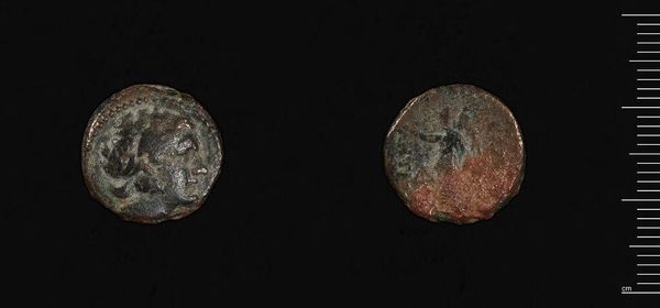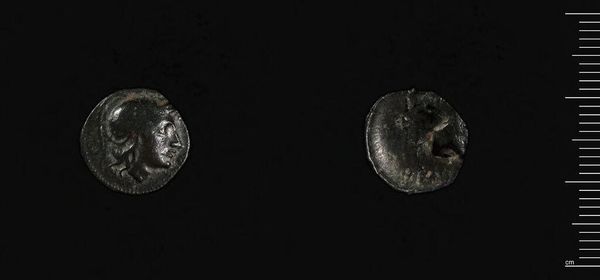 Curator: This coin of Antiochos III, the Great of Syria, from Apamea, strikes me immediately with its profound sense of age. Editor: Indeed. The worn surface tells a story. It's almost as if the material itself remembers the hands it passed through, the economies it fueled. Curator: Precisely. The embedded symbols, though faded, still evoke the power and authority Antiochos sought to project. The imagery is almost a cultural echo resonating through millennia. Editor: And let's consider the labor. Minting coins was a highly skilled craft. Each strike, each imprint, a testament to the artisan's hand and the economic machinery of the Seleucid empire. Curator: The portrait of Antiochos, however stylized, aimed to create a lasting impression of leadership and perhaps even divinity. It’s a form of early propaganda, influencing perceptions and solidifying his rule. Editor: Absolutely. But it's not just about grand pronouncements. These coins were essential for daily transactions, illustrating how even humble objects could convey ideology. What a fascinating glimpse into the labor and consumption within this historical context. Curator: Yes, the coin’s symbolic value transcends its monetary worth, whispering tales of empire, belief, and human ambition. Editor: And now, viewing it, I'm left pondering the lives it touched, the hands that made and spent it.