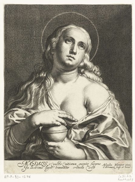 Alexander van Haecken created this mezzotint titled 'Reuk', the Dutch word for 'smell,' sometime in the first half of the 18th century. This work evokes a sense of the social and cultural values of the time, particularly regarding gender and class. In this piece, we see a woman in a state of undress, her gaze lowered, as she delicately inhales the fragrance of a flower. A basket overflowing with blossoms rests in her arms. The work is evocative of sensuality and the aesthetic appreciation of nature. While seemingly innocent, the depiction flirts with the representation of women as objects of beauty and pleasure. The soft rendering of the figure hints at the male gaze prevalent in much of the art of this era. Consider, too, how such imagery might have been consumed. Was it a private indulgence for a wealthy collector, or did it serve a broader social function in shaping ideals of femininity? 'Reuk' invites us to reflect on the complex interplay between art, gender, and the senses in the 18th century.