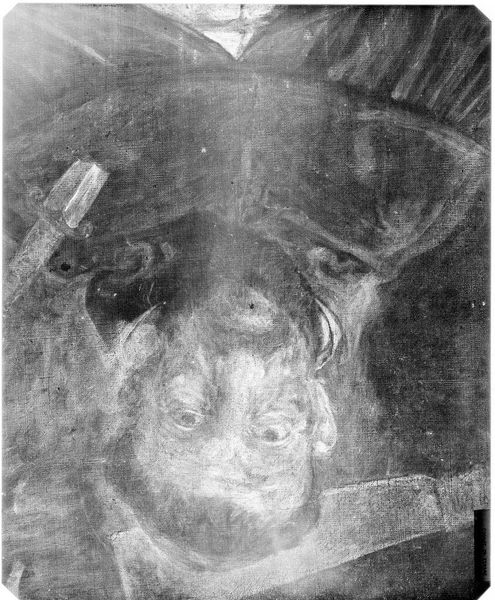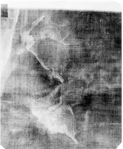 Curator: We're looking at an X-radiograph of "Three Saxon Counts," originally by Lucas Cranach the Elder. Editor: The ghostly image gives me a sense of unease, revealing hidden layers and lost forms. Curator: Indeed. The materiality exposed through radiographic techniques allows us to see the artist’s process, the application of pigment and preparation of the panel. Editor: And the labor involved in creating these portraits of nobility! It reminds us that even seemingly ethereal images are the product of skilled hands, and the earth, in the form of minerals processed into paint. Curator: Precisely. The radiographic perspective shifts our understanding of authorship, adding new dimensions to Cranach’s established style. Editor: This technique illuminates not just the figures, but also the very making of the image, forcing us to confront its physical existence. Curator: A compelling testament to the potential of interdisciplinary examination. Editor: I concur; It is not merely an image, but an artifact of history unveiled.
