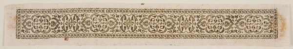 Editor: This is "Piece II", made by an anonymous artist, and held at the Harvard Art Museums. It's such a delicate pattern. What can you tell me about this kind of imagery? Curator: Well, its rigid, repetitive structure makes me think of decorative borders found in books or architectural details. Consider the social context: who had access to such ornamentation, and what did it signify about their status? Editor: So, you are saying that this simple image is tied to class and power? Curator: Precisely. How does its design relate to other examples of decorative art you may have encountered? Thinking about the broader cultural trends helps us understand its initial creation and later reception. Editor: That definitely gives me a new way to look at something so seemingly simple. Thank you. Curator: My pleasure, understanding the layers behind the art makes it richer for everyone.