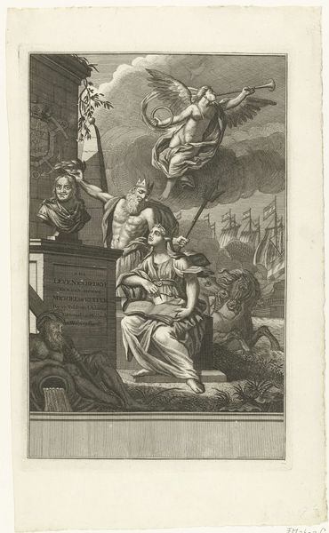 This allegorical print, of unknown date and authorship, was made using the intaglio process. The artist would have used a sharp tool to cut lines into a metal plate, which was then inked and pressed onto paper. The resulting image, an assembly of classical figures, is rich with symbolism. Minerva, Mercury, Neptune, and Hercules, all drawn with crisp lines and careful shading. It has an air of academic polish about it – a kind of careful labor quite different from the industrial mode of production then emerging. Prints like these were produced in multiples, making imagery accessible to a broader public. But consider the skilled hand-work involved: the engraver’s precise cuts, the press operator's careful application of pressure. These are laborers too, contributing to the circulation of ideas and images in their own way. By attending to the material origins of this print, we can appreciate how it participates in a wider network of making and meaning.
