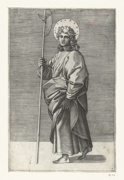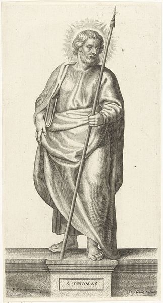 This is Petrus Clouwet’s etching of Saint James the Greater. The saint's radiant halo marks his divine status, but it is the pilgrim's staff that tells a deeper story. The staff, topped with a gourd for water, is more than a tool for walking. It's a symbol of spiritual journey, echoing the travels of hermits and wanderers throughout history. Consider its connection to the caduceus of Hermes, a symbol of transitions and boundaries overcome. The image of the traveler resonates across cultures, signifying not just physical movement, but also inner transformation. The act of pilgrimage is as old as civilization itself. It transcends literal travel; it becomes a metaphor for the human search for meaning and transcendence. The staff, therefore, is a potent symbol, charged with centuries of collective striving. It is a cultural object that touches us on a subconscious level, reminding us of our own journeys.