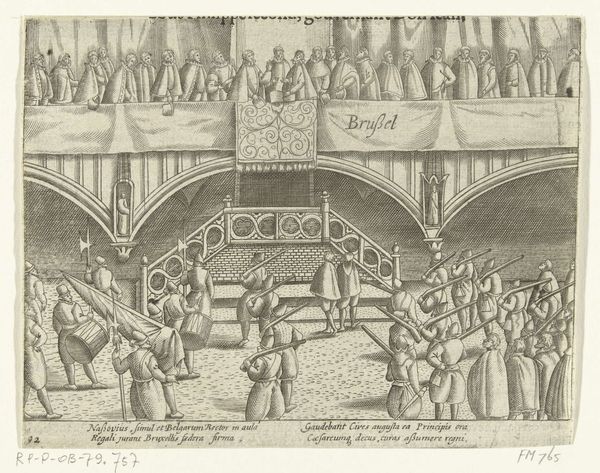 Nicolas Chevalier made this print of a masked ball in 1713. It offers a glimpse into the elaborate social rituals of the European aristocracy during the early 18th century. The image depicts a lavish feast, complete with music and masked figures, staged within a grand hall. Chevalier employs visual codes of the time, such as formal attire and elaborate table settings, to convey the wealth and status of the depicted social group. The location could be France, given the artist’s name, or the Netherlands, where he lived later in life. The print gives a sense of the importance attached to courtly spectacle. But also, perhaps, the slightly chaotic and carnivalesque atmosphere of these events, where social hierarchies could be temporarily blurred behind the masks. To fully understand this work, one could look at period sources such as etiquette manuals, memoirs, and accounts of similar events. These resources would provide a clearer picture of the print’s cultural context. Analyzing art in relation to its institutional and social setting highlights its function as a mirror reflecting the values, anxieties, and power dynamics of its time.