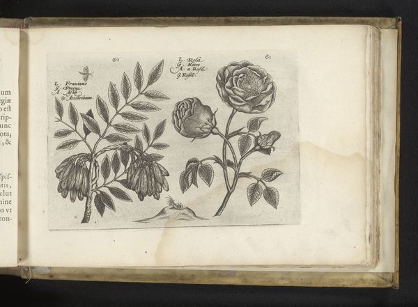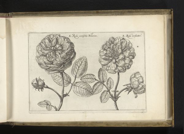 Editor: Here we have "Twee rozensoorten", or "Two Types of Roses," a 1617 drawing by Crispijn van de Passe the Younger, currently held in the Rijksmuseum. It’s quite detailed, almost scientific in its precision, but rendered in a delicate engraving style. What do you see in this work? Curator: I'm immediately drawn to the materiality of the printmaking process itself. The lines, meticulously etched, speak to a skilled artisan navigating the demands of reproduction. It wasn't just about representing the roses, but about crafting an object for wider circulation. Consider who would have commissioned this, who bought it, and how they used it. This object itself tells a story of knowledge dissemination, where craft, capital, and science intertwine. Were these images destined for a botanical treatise or an emblem book? Editor: That's a good point. It doesn't seem purely artistic. It feels more utilitarian somehow. Curator: Exactly! It raises interesting questions about the separation between art, craft, and science during this period. Where does one draw the line? Consider the paper too—where was it sourced, who produced it? How does its materiality impact the longevity and interpretation of the image? These considerations situate the roses within a complex web of labor and commerce. Editor: So you're saying the process of creation and its place within a network of makers and consumers, is really the focus, even more so than the beauty of the roses? Curator: Precisely. This print illuminates how art isn't solely about aesthetics; it's intrinsically linked to the social and economic conditions of its making and circulation. This impacts the roses as an art object and what it comes to mean over time. Editor: I never really thought about that level of context before. It’s fascinating how a seemingly simple image can reveal so much about the world it came from. Curator: Indeed. Focusing on materials and processes brings these historical contexts alive. We need to remember that what's on display is an object that contains more than just what it represents.