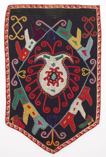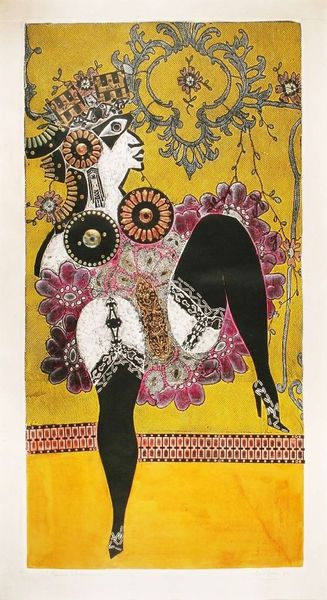 Editor: Here we have Tadashi Nakayama's "Blue Horse" from 2003, and it seems to be mixed media, possibly incorporating textile elements. I’m immediately drawn to how the artist combined disparate patterns and textures within the horse itself. It feels almost fragmented, yet harmonious. How do you interpret this piece, especially considering the artist's choices in material? Curator: It's fascinating to consider this "Blue Horse" as a product deeply embedded in its means of production. Notice how the artist layers different materials. We have a central figure that could be achieved by many textile techniques such as dying, needle work or applique to incorporate patterns of production and manual work in an industrialised world. It directly challenges our ideas of labor, commodification and craft production. How does that understanding impact your original reading of harmony and fragmentation? Editor: I see what you mean! The way these different techniques were used, highlights not just surface decoration but also labour that shaped those patterns which may explain the impression of a fragmented image that in fact is a result of labour divisions in society? Also I read that Nakayama was deeply inspired by folk art and textiles, could that play a role? Curator: Exactly! The use of folk-art directly comments on the blurring of art, craft and design. By taking materials and design of artisanal character and re-producing them by textile medium. Editor: It certainly pushes boundaries! The combination feels very deliberate. I’m seeing how the medium amplifies Nakayama's message by prompting reflection on these production values and labor traditions. Curator: Absolutely! I see an excellent intersection of how meaning can derive by medium. I learned the folk inspiration in Nakayama's designs were very poignant to read the art's meaning.