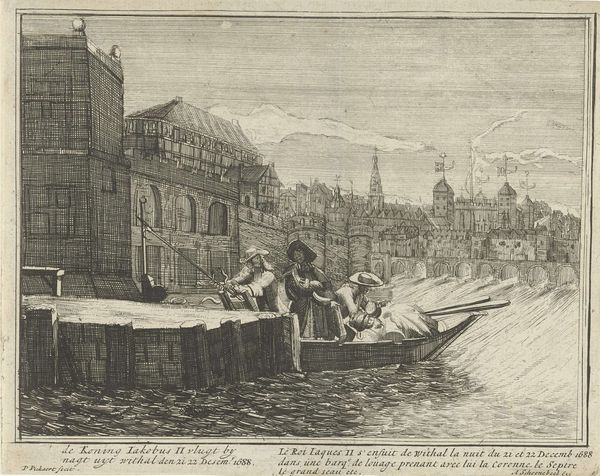 Pieter Bast created this etching of Het Kasteel Aldegonde in 1598, using the labor-intensive technique of etching. The process begins with a metal plate, likely copper. The plate is coated with a waxy, acid-resistant ground. Bast then used a sharp needle to scratch away the ground, revealing the metal beneath. When the plate is dipped in acid, the exposed lines are eaten away, creating grooves. Ink is then applied to the plate, filling these grooves, and the surface is wiped clean. Finally, the plate is pressed onto paper, transferring the ink and creating the image. The success of the etching depends on the artist's skill in manipulating the materials, controlling the depth of the lines, and ensuring a clean transfer. The lines are precise and controlled to capture the architectural detail of the castle, and social life around it. Bast's etching demonstrates the importance of the hand in the age of mechanical reproduction. The labor of producing the image is clearly evident in the final print.