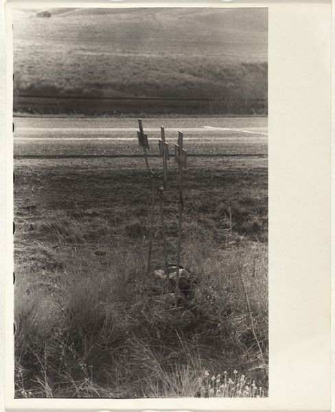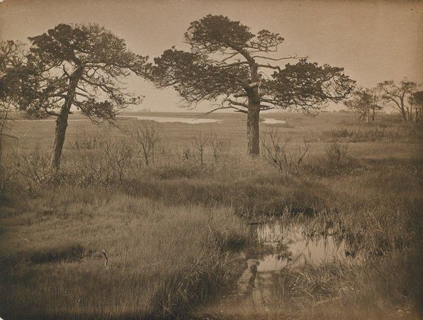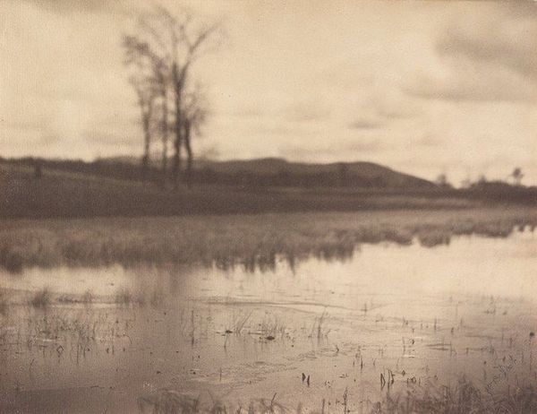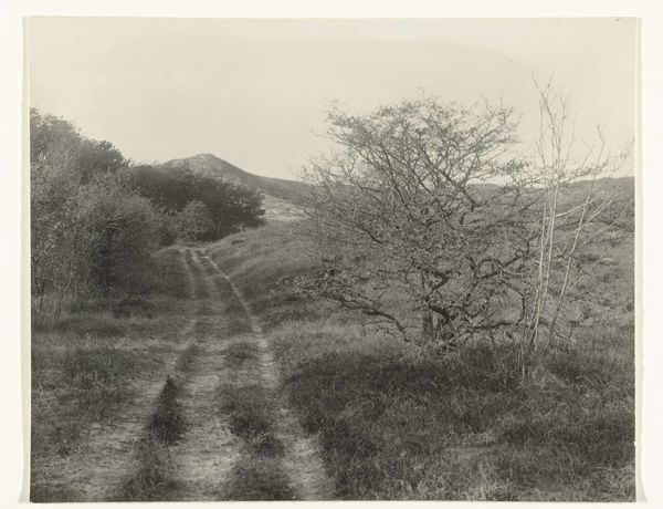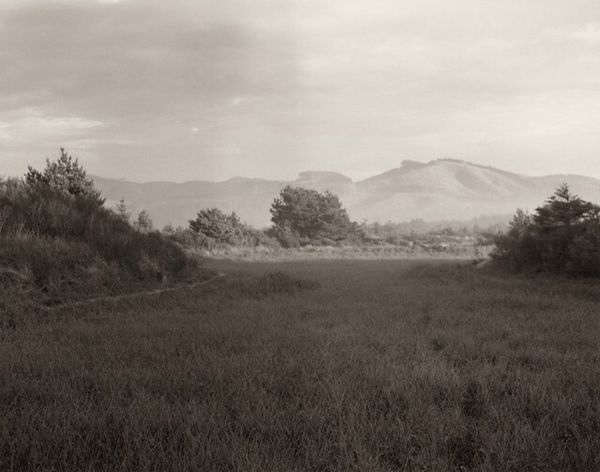 Editor: So, this is William B. Post’s photograph "Wild Aster," probably from the late 19th or early 20th century. It’s a graphite drawing in a landscape format. The scene has a kind of melancholic beauty to it. What do you see in this piece that I might be missing? Curator: That melancholy you sensed is palpable. I see a conversation, one rooted in symbolism that echoes across time. The wild aster itself – consider its symbolic weight. It's a late-blooming flower, often associated with remembrance and love that lasts beyond the seasons. Notice how it boldly asserts itself amidst the fading grasses, it feels very intentional. Editor: Yes, the flower stands out despite the muted palette. It is "wild", which seems pertinent. How does that detail change its reading? Curator: Exactly. "Wild" suggests a return to nature, a place beyond cultivation, an unrestrained desire. Does this image echo older traditions, myths and visual cultures which linked particular types of flora to aspects of human character and psychology? The mountain could signify transcendence, aspiration, a journey upwards. A distant lone tree sometimes signifies endurance or isolation. Post seems to weave a whole complex story here. Editor: It’s amazing how much the scene suggests. And it speaks to America, given the setting. Curator: Indeed. These visual cues work together to elicit an emotional response, touching on universal themes of longing, memory, and the transient nature of existence. By embracing that, the symbolic register remains accessible, ensuring this landscape whispers its message to viewers, both today and tomorrow. Editor: This has completely transformed how I view the work. I had not fully grasped how effectively it communicates on such a profound, cultural level. Curator: It reminds us of the enduring power of symbols and how they bridge the past and present through our collective visual vocabulary.