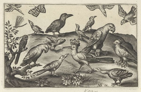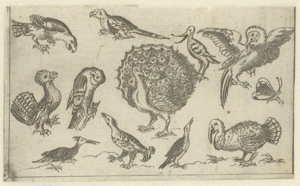 Philips Galle made this 16th-century print of ‘Elf Vogels’, or eleven birds, using the technique of engraving. This was a highly skilled process. The artist would have used a tool called a burin to carve lines directly into a copper plate. Ink is then applied to the plate, and the surface wiped clean, leaving ink only in the incised lines. When paper is pressed against the plate, the image is transferred. Galle was a master printmaker who ran a large workshop. His business model depended on the efficient reproduction of images for a growing market. The precision of the engraving technique allowed for detailed replication, making art more accessible, although labor intensive and specialized. The uniformity of the line suggests a systematic, almost industrial approach to art production. While the print depicts nature, its creation was deeply embedded in the economic structures of the time. Examining the making of ‘Elf Vogels’ underscores how art and craft were intertwined with labor and commerce in the early modern period.