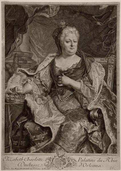 This mezzotint, by Pieter van Bleeck, portrays Maria Theresa, Holy Roman Empress, and offers insights into the construction of power and gender roles in 18th-century Europe. The image creates meaning through visual codes that would have been immediately legible to contemporaries. Made in either the Netherlands or Great Britain, the portrait uses the visual language of monarchy to legitimize Maria Theresa's reign. Note the crown placed prominently to her right. Consider how specific features of that culture, such as historical events, social class, and political movements, might have influenced the artwork. As a woman ruler in a male-dominated world, Maria Theresa's image had to negotiate the politics of gender. The portrait projects authority but also emphasizes her femininity through delicate features and ornate clothing. The portrait’s inscription indicates it was “Addressed to the Right Honourable John Lord Carteret one of his Majesties Principal Secretaries of State.” This dedication suggests the print served a diplomatic function, reinforcing alliances through the circulation of the Empress’s image.