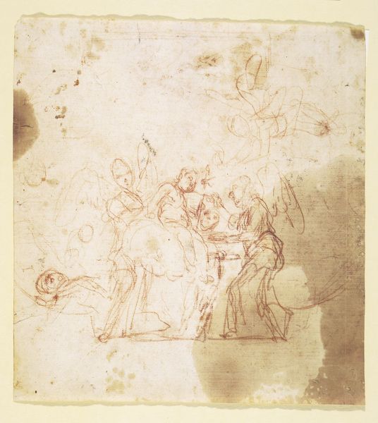 Wilhelm Marstrand created this pen drawing on paper, now held at the SMK, using delicate lines to depict a serene scene. The composition centres around three adults and two children positioned on and around a bench beneath a tree. The linear quality gives the drawing a sense of lightness, almost as if the scene is a fleeting memory. The strategic use of line directs our eye, creating depth and defining the figures. Note how the lines are not uniform; Marstrand varies the pressure, adding volume and shadow to the figures and foliage. This variation gives life to the scene, suggesting movement and the gentle play of light. The spatial arrangement here is intriguing. The figures are closely grouped, almost merging, yet the landscape behind remains sparse, creating a contrast between intimacy and openness. This dynamic is fundamental to how we perceive the scene. Are we looking at a moment of familial closeness against the backdrop of a vast world? This interplay encourages us to contemplate the relationship between individuals and their environment.