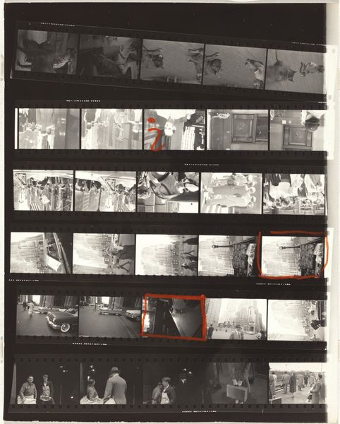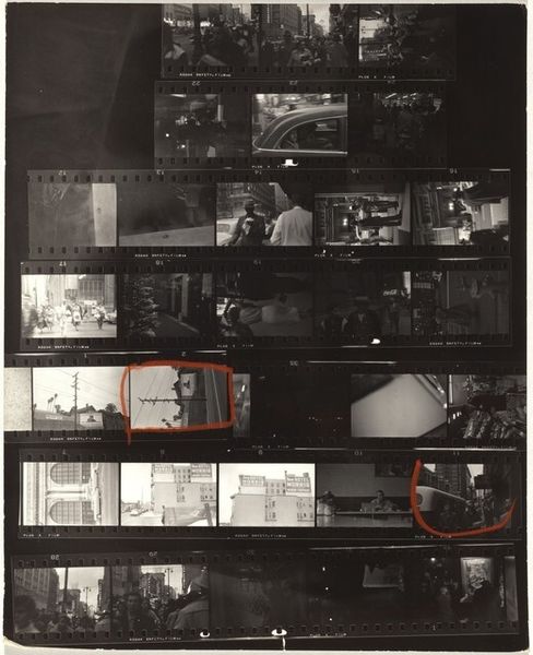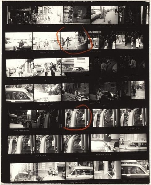 Robert Frank's 'From the bus 61' presents us with a black and white contact sheet, raw with process, each frame a glimpse of street life, or maybe just life, from a bus window. I like how immediate it feels. Looking at the sequence, it’s all about movement and chance – a bus ride becomes a study in seeing. Some shots are sharp, others blurry, like memories half-formed. This one strip, that shows the bus pulling away, circled in red, captures it so well. The composition, the use of light and shadow, it's so New York! It reminds me of the work of Helen Levitt, another street photographer who captured the poetry of everyday life. But where Levitt focused on people, Frank seems more interested in the city itself. For Frank, like any good artist, art wasn't about answers, but about the ongoing, beautiful, messy conversation of seeing.
