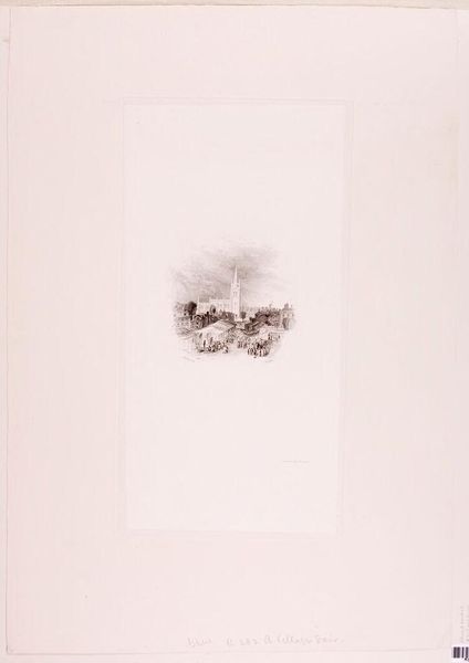 Curator: This is Edward Goodall’s "Cortes and Pizarro," currently housed at the Harvard Art Museums. Editor: It feels like peering into a memory, a half-forgotten dream. It’s somber, almost ghostly. Curator: Goodall’s focus on Cortes and Pizarro opens a dialogue about colonialism and the legacies of exploitation. The setting likely signifies the imposition of European culture and religion on indigenous populations. Editor: I see that, definitely. But there’s something about the small figures dwarfed by the architecture that speaks to me of individual ambition swallowed up by history itself. Curator: Yes, the architectural grandeur could symbolize the Church's role in legitimizing colonial power, and the individuals a more nuanced interpretation of the two figures. Editor: I hadn’t thought of that. It does add a new layer to it. Curator: By looking at it this way, we can understand the history while feeling the emotional weight of its consequences. Editor: Exactly. And, sometimes, that's all we can ask from art: to consider the complex past.