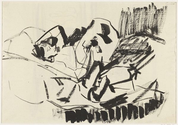 Rik Wouters made this ink drawing, "Nel Sewing before the Butterfly Sofa," capturing an intimate moment in his domestic life. Wouters, working in the early 20th century, often depicted his wife, Nel, in everyday scenes, reflecting the confines and intimacies of their shared world. The use of stark black ink creates a sense of immediacy, almost as if we’re catching a glimpse of Nel’s private sphere. The act of sewing, traditionally associated with domestic femininity, frames Nel within the boundaries of home and wifely duties. Yet, there's a quiet dignity in her concentration, a subtle rebellion against the conventional roles assigned to women. As Wouters once said, “I only paint what I feel,” and here, we sense not just an observation, but an emotional connection to Nel's world. The drawing offers a glimpse into the negotiation of identity within the domestic space. It reflects both the limitations and the quiet power found in the everyday lives of women.
