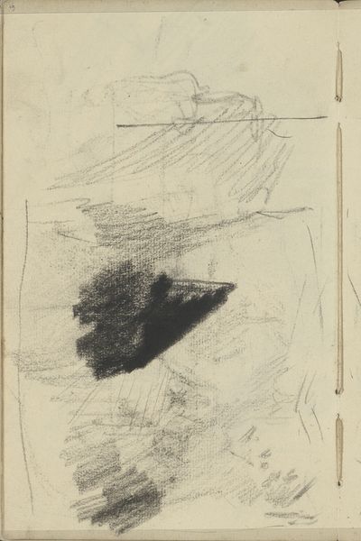 Curator: I'm struck immediately by the rawness of this image. The marks feel almost violent, definitely gestural. It is hard to grasp exactly what they represent! Editor: Here we have George Hendrik Breitner's "Studie, mogelijk van een landschap met wolkenlucht," dating from around 1883 to 1885. Currently it resides here at the Rijksmuseum. It's rendered with pencil and graphite on paper, displaying the energy of Impressionism, although bordering abstraction in its essence. Curator: Abstraction is key, wouldn't you say? It avoids easy categorization. The textures are quite captivating and diverse, created using methods such as frottage which provides another unique element in the making of this piece. There is no doubt Breitner knew his materials! Editor: Agreed. It seems he was focused on the atmospheric effects and the interplay of light and shadow, wouldn’t you say? The bold, dark strokes contrast sharply with the lighter areas. Consider also how Breitner utilizes a limited palette, forcing the viewer to engage with the nuances of tone and texture to define the forms. Curator: Breitner was absolutely embedded within the societal structure that supported this sort of rapid material exploration; pencils, paper readily available... What social circumstances fostered this prolific sketch habit? Was this for a bigger commission or was he simply capturing transient visual phenomena? This affects profoundly how we view his sketches. Editor: While the social context is surely valuable, consider also the spatial dynamism! Note the layering, the rhythm… Does it create a certain kind of spatial harmony? There’s an almost musical quality in the repetition and variation of lines. And where might you locate the horizon line? Where is our perspective placed? Curator: Perhaps it is not as simple as that - is our contemporary view too simplistic in searching for literal horizon lines or traditional representational qualities within historical landscape art? Editor: I see how the deliberate application draws us to it - Breitner understood exactly how his formal methods impacted and guided the viewer's journey throughout his composition. It’s not just a random application; everything is precisely placed to achieve maximum impact. Curator: And I'm left thinking about its position in art history. Such works bridge traditions while simultaneously opening to innovative mark-making - that impacts on its reception and our place in understanding its importance, I think! Editor: Ultimately it provokes dialogue; in both a formal and contextual nature. I appreciate those dynamic juxtapositions!