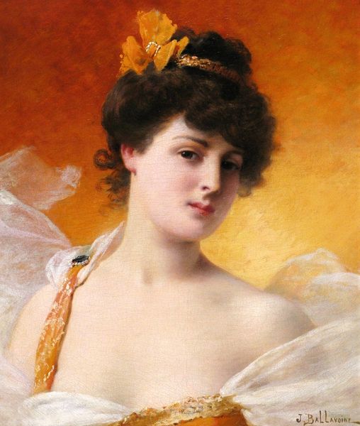 Curator: I’m drawn to the overall lightness of “Profile of a Young Woman,” a piece attributed to Giovanni Boldini. It almost seems to glow. Editor: Absolutely, the delicate brushstrokes really capture a sense of fleeting beauty. But I also see a kind of constructed femininity at play. How are we meant to view this woman? Curator: It's definitely posed, likely a commission, catering to a specific class. We see this kind of imagery serving the interests of the bourgeoisie at the turn of the century, capturing an ideal of feminine beauty and refinement that’s inherently linked to wealth and leisure. Editor: I think that lace shawl and those delicate lilac blossoms reinforce that connection. But the gaze… it’s not vacant or submissive. She seems to be looking towards something, perhaps hopeful for the future. Or perhaps merely uninterested. Curator: Boldini was well-regarded as a society portraitist. Think about the social dynamics of that era, where the display of beauty was intrinsically tied to status and the marriage market. The painting would certainly have been intended to portray her in a way that accentuated her eligibility, but it still makes it into art through execution. Editor: I agree, that quick, suggestive brushwork definitely elevates it. Still, when viewing this type of portrait, I believe we have a duty to think about who is not being portrayed, who lacked the privilege to have their likeness captured and disseminated. Also how such depictions solidify very rigid expectations and ideals of womanhood. Curator: And also how art becomes a tool in reinforcing social norms. Thinking about "Profile of a Young Woman" within the broader historical and political contexts of its time offers valuable insights into how gender, class, and power intersect in the realm of art. Editor: Yes, remembering both the exquisite skill and the systems in place that brought this likeness into existence helps us grapple with its legacy, I believe. Curator: Precisely, to fully appreciate Boldini's portrait, one must critically examine the context it both reflects and perpetuates. Editor: It is a reminder that our interpretations of beauty evolve and art always carries with it the complexities of its time.