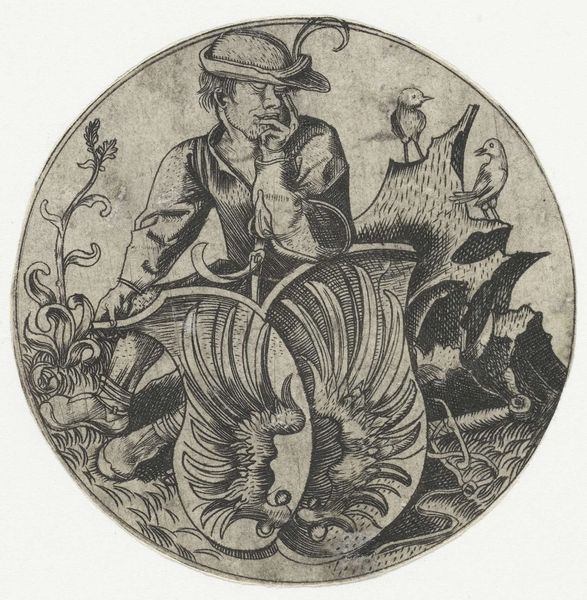 Dimensions: Sheet (trimmed/oval): 10 5/8 × 11 13/16 in. (27 × 30 cm)