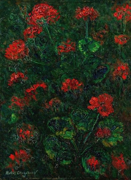 Gustave Caillebotte made this painting of chrysanthemums in his garden using oil paint on canvas. Look closely, and you'll see the flowers aren't just depicted, they're almost built up from the material of the paint itself. Oil paint's inherent qualities of viscosity and sheen allowed Caillebotte to apply thick, textured strokes, creating a tactile surface that mimics the fullness of the blossoms. This method, very characteristic of impressionism, speaks to the labor involved, each stroke representing a deliberate action. However, it's important to remember the social context. Caillebotte came from a wealthy family, so the production process here is distinct from artists working with less access to resource. While the painting conveys a sense of natural abundance, it also reflects the artist's privileged position, and the economic system that supported his artistic pursuits. Thinking about materials, making, and context helps us understand the full meaning of Caillebotte's art.