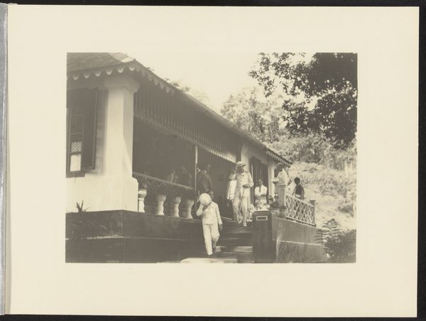 Curator: Welcome. Today, we're looking at "Ada Krüseman on a veranda, Tjibeber," an interesting photographic print dating back to 1932. Editor: There’s a languid feeling, isn't there? All muted tones and wicker chairs. I immediately feel like I’m in a Somerset Maugham story. What strikes you first? Curator: It's the composition, the way the light falls and emphasizes the seated figures in such a staged fashion. They look contemplative. The composition almost adheres to a kind of colonialist-era tableau vivant style. Editor: Tableau vivant—good phrase! Staged, yes, but look closer. There's something deeply human trying to peek through this performance of civility. Notice the slightly unfocused gazes of the individuals and the arrangement itself... there's an accidental casualness that feels, to me, more about fleeting reality than it does of permanence. It brings warmth to an otherwise structured scene. Curator: Absolutely. You read a personal narrative within its form. And it’s important to acknowledge that "Ada Krüseman on a veranda, Tjibeber" exists now within a context of "aged paper," "reduced colour palette," and even "photo restoration" adding further depth. Does the surface inform your understanding? Editor: Immeasurably. The degradation of its color, that almost dreamlike desaturation, is like memory itself fading, allowing for both heightened beauty and, indeed, deeper interpretations of what truly remains—that humanity we spoke of. I almost think it is now beyond photography...it has become a memory. Curator: An emotional archaeology then. To engage with its eroded elements is to encounter both its original intent, whatever that may be, as well as its legacy as a historical artifact. Editor: Exactly! That friction—that push-and-pull between then and now—becomes the poem, or the heart of the piece. Curator: Well, on that beautiful note, I think we have reached the end of our visit. Editor: Thank you, and don't forget, art often lies not in perfection, but in the eloquent imperfection.