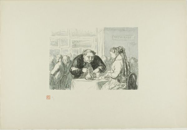 Gijsbertus Johannes van Overbeek made this drawing, "Meisje prikt een jongen" using ink on paper. The artist's choice of ink, applied with a thin nib, allows for meticulous detailing and fine lines. The medium's fluidity lends itself to spontaneity and rapid execution, capturing a fleeting moment. The social context is also evident, depicting a snapshot of domestic life from the early 20th century. The application of ink on paper also allows the artist to imbue the artwork with social or cultural significance. The detailed linework emphasizes the figures' expressions and clothing, offering insight into the social dynamics within the scene. The labor involved in creating such intricate detailing reflects the artist's dedication to his craft. The choice of materials speaks to the artist's technical skill and creative expression, blurring the line between fine art and everyday life.