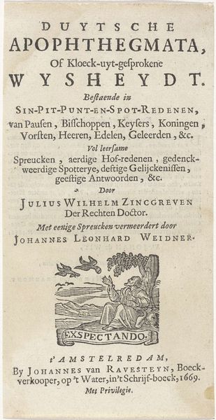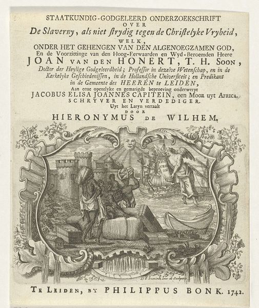 Editor: So, here we have the title page for Jehan Baptista Houwaert’s "Den stryt van de kloecke maechden," from 1622. It’s an engraving, and the typography gives it this authoritative feel, like a proclamation. But there’s also this almost whimsical illustration in the middle... What’s your interpretation of its cultural relevance? Curator: That illustration, precisely, complicates any straightforward sense of authority. We see an allegorical figure, perhaps representing Virtue, but surrounded by everyday objects: kitchen implements. This points to the complex relationship between the public sphere, dominated by men, and the private, domestic world of women. The "stryt" or "struggle" in the title likely alludes to the social pressures and expectations placed upon women during the Dutch Golden Age. How might this title page function as a form of marketing this struggle, and for whom? Editor: Interesting! So the publisher is trying to make the case for women's strength within a culture dominated by men? Is the choice of the Baroque style significant to how women’s roles were publicly received? Curator: The Baroque, with its emphasis on drama and emotion, provided a visual language to express those social dynamics. Think of it as visual rhetoric deployed within a very specific socio-political context. This wasn't simply a matter of accurately reflecting society. This imagery was used to encourage discourse in both the upper and lower class. Given what we know, is the purpose meant to showcase or critique women's roles in 17th century society? Editor: Hmm, I hadn’t considered the marketing aspect, thinking about how this piece engages in conversation about social roles rather than just depicting it. That gives me a lot to think about. Curator: Indeed, art is seldom just 'about' something. It's 'doing' something. Analyzing its cultural function is crucial. It can offer insights into societal norms, power dynamics, and the continuous reshaping of our collective history.