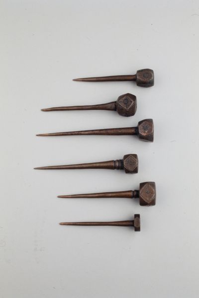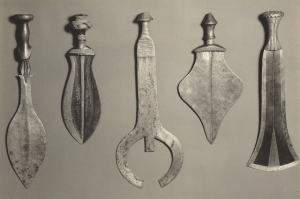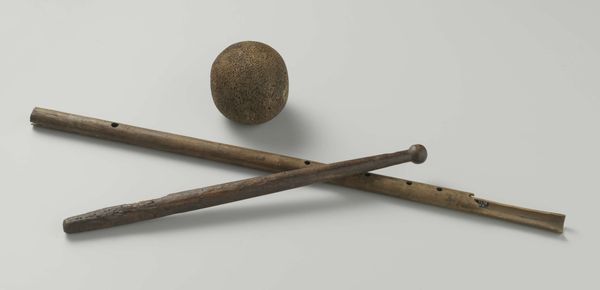 Editor: Here we have, “Cannonball for Two-Pounders,” dating back to approximately 1590-1596. It's an anonymous work consisting of various metal and wood elements. I’m immediately struck by the starkness of the objects – laid bare, almost clinical in their presentation. How do you interpret this collection of implements? Curator: It's crucial to understand these objects not simply as tools of war, but as artifacts deeply intertwined with the sociopolitical climate of the late 16th century. These aren't neutral items; they represent power, violence, and the negotiation of dominance on both a personal and a state level. The history painting tag points us towards thinking about this image and whether these elements are part of some greater story. Consider how advances in weaponry influenced the ongoing power dynamics within Europe, shaping colonial expansion and perpetuating societal inequalities. Who were wielding these objects? What impact did they have? Editor: So, you're saying it's not just about the physical objects, but what they symbolize within a larger system? The intersection of technology, power, and inequality, almost? Curator: Precisely. Reflect on the ways these objects were deployed to reinforce existing social structures and perpetuate colonial narratives. Understanding the context helps us question the legacy these objects represent. The question is whether they promoted social hierarchies, gender bias, or promoted the ongoing dehumanization. By what and whose standards? And can the act of putting these objects in a display change those historical narratives? Editor: That reframes it completely. I hadn't considered the ways in which they facilitated not just conflict, but also injustice. Curator: These were certainly inequitable times and objects from those eras reflect them. I find thinking about their initial and contemporary interpretations fascinating. Editor: I will never be able to look at a sculpture the same way. It helps put things in context, knowing who might have commissioned this object and why. Thank you!