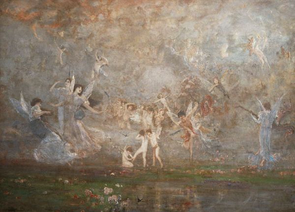 Hans Makart painted the "Sinking of the Nibelungen Stronghold into the Rhine" with oil to capture the dramatic culmination of Wagner's epic. At the top, ethereal figures float amidst clouds, representing the gods and heroes of the Nibelungenlied. The Rhine itself is a central character, its depths becoming a watery grave for the stronghold and its treasures. Water here is not merely a location; it is a symbol of cleansing and oblivion. Consider the ancient myths where water is a boundary between worlds. In ancient Greek mythos, the river Styx separates the land of the living from the underworld. Here, it submerges a kingdom, evoking a sense of tragic finality, and stirring primal fears and fascination. The swirling chaos and the obscured forms tap into a deep well of collective memory, engaging us on an emotional level that transcends the narrative itself. The image becomes a potent symbol of loss and transformation, mirroring the cyclical nature of history and myth.