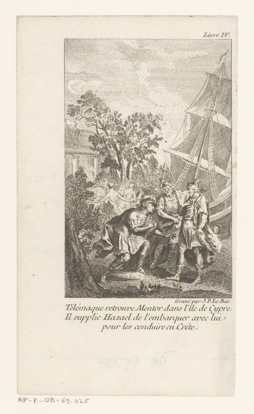 Editor: Here we have "Bathing Men and Hunters," a print etched by Romeyn de Hooghe sometime between 1655 and 1708. What strikes me most is the contrast between the meticulously rendered figures and the rather loosely defined background. How do you interpret the compositional elements in this piece? Curator: Note the stark contrast in the textures achieved through the etching technique. The foreground figures display a rich layering of lines to create depth and volume, drawing our eye immediately to their activities. The distribution of dark and light contributes to an evident hierarchy, subtly dictating where the eye should rest. The landscape's lines, however, are notably more sparse. Do you perceive a purpose in this disparity of detail? Editor: I'm guessing it is the suggestion of depth in the scene. Focus and sharper detail create nearness. This print shares aspects with genre paintings from the same period in the Netherlands. So how much is this related to art theory from this time, or is it more like just the result of what buyers appreciated? Curator: Genre painting offered artists freedom in composition, as evidenced by the strong horizontal and vertical organization. Also, there's the artist's meticulous treatment of line, a feature reminiscent of Baroque ideals in other media like sculpture and architecture. Editor: Ah, interesting. Thanks for helping me appreciate the artist's choices in this composition. Curator: Indeed. Reflecting on how this artist engaged in this technique sheds light on art historical approaches to subject matter, formal decision making, and social commentary.