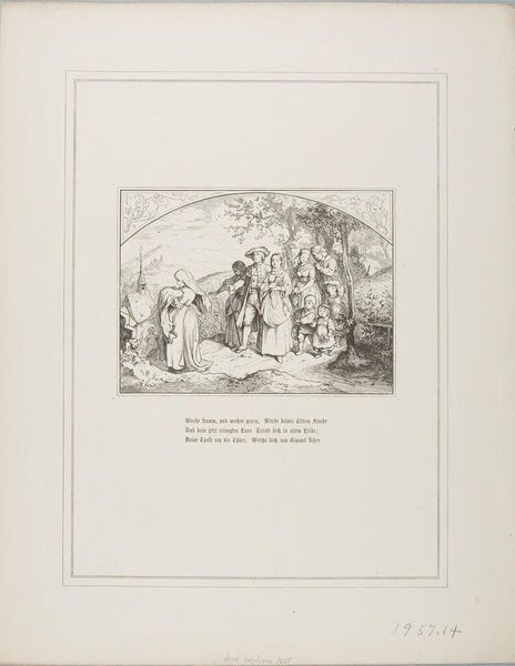 Curator: Here we have an intriguing image titled "Sleep, Young Woman!", of unknown origin, found at Harvard Art Museums. It depicts a sleeping woman and a small child. Editor: My first thought is one of stark contrast. The sleeping mother, so still, and the child, full of restless energy, reaching out. It feels symbolic. Curator: Indeed. The image evokes the traditional Madonna and Child, but with a subtle subversion. The mother's passivity challenges typical depictions of maternal alertness. The open book suggests access to knowledge. Editor: I see the child’s gesture as an awakening—a call to consciousness. The flowers could represent the fleeting nature of youth. Curator: Perhaps it's also a commentary on the roles imposed upon women—the expectations of motherhood versus intellectual life. It could be a statement on the societal pressures of this time. Editor: A poignant reminder that even in repose, archetypes speak volumes. Curator: And that the public display of intimate imagery is in itself a political act.