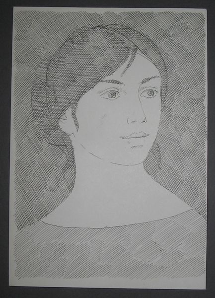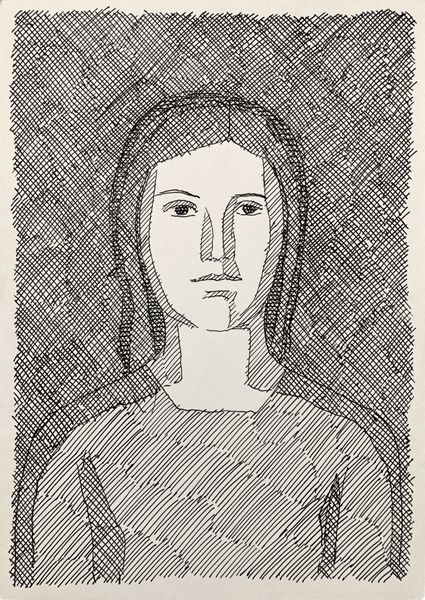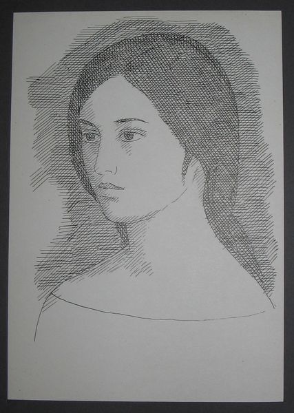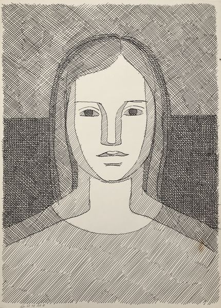 Editor: Here we have Hryhorii Havrylenko's "Female Image," created in 1965, a drawing from a private collection. It's a striking portrait; the sharp, linear quality gives it a strong, almost austere feel. What do you make of this piece, and what context might illuminate it for us? Curator: Well, let's consider the social context. This was made in 1965, in Soviet Ukraine. Abstract figuration like this, while not overtly rebellious, subtly challenges the strict Socialist Realism that was officially sanctioned. The artist’s choice to simplify form and utilize linear precision can be interpreted as a quiet act of resistance. Do you think the lack of overt emotion contributes to this reading? Editor: Absolutely, it's so restrained. There's a stoicism in the subject’s gaze, further amplified by the drawing style. How might institutional frameworks, such as art academies or state-controlled exhibitions, have shaped Havrylenko’s choices? Curator: Artists working at this time often had to navigate a very particular tightrope. The institutions generally promoted art that served the state's ideological purposes. Works like this, which leaned towards abstraction, often risked being marginalized or rejected. So, you see this kind of simplified style emerged as a way to suggest dissent without triggering censorship directly. Did he have a public profile? Editor: From what I understand, Havrylenko navigated between official work and his personal artistic expression, showing commitment and self expression even at a cost. I see it so clearly, and now understanding those dual pressures illuminates his work in a completely new way. Curator: Precisely, understanding the push and pull between artistic intention, sociopolitical forces, and institutional expectations allows us a richer and insightful perspective.