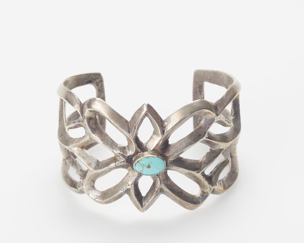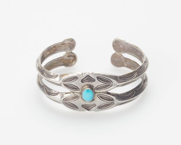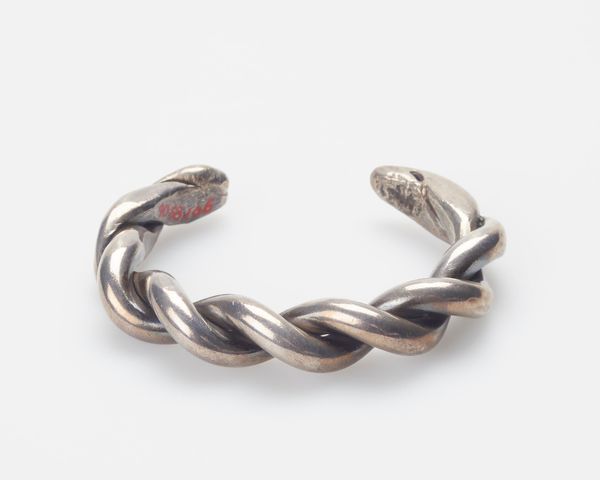 This silver bracelet was made by a Navajo artist, and the when of it is unknown to me. I’m drawn to the rhythm of the bracelet, the way the metal loops and curls. It's like a dance, a visual poem etched in silver. You can see the hand of the maker in its curves and bends. It's not perfect, but it’s perfectly itself. The surface has a soft sheen and the marks of time; you can almost feel the stories it could tell. Look at the tiny swirl near the end; it’s a microcosm of the whole piece. All the gestures relate to each other, and yet each is individual. It makes me think of the work of Calder, with his playful, inventive use of metal. Art’s like a conversation, you know?