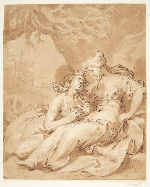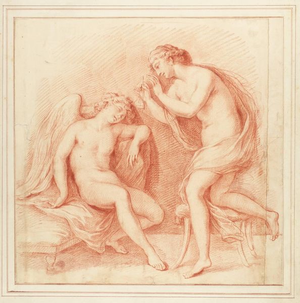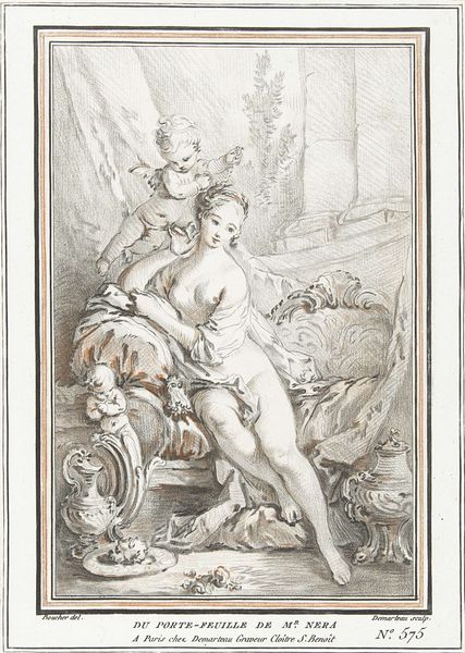 Gilles Demarteau created this print of Venus and Amor, likely sometime in the late 18th century. It depicts Venus, the Roman goddess of love, with her son Cupid, surrounded by grapes. Prints like these played a crucial role in disseminating artistic ideas during this period. Demarteau, as the inscription tells us, operated his print shop in Paris. It was there that images of paintings and sculptures, often depicting classical subjects like Venus, were reproduced and sold to a growing market of art enthusiasts. These prints weren’t just copies; they were interpretations, often adapting the original work to suit the printmaking technique and the tastes of the time. The image itself speaks to the cultural fascination with classical antiquity that characterized the era, particularly within the French Royal Academy of Painting and Sculpture. The choice of subject matter, the idealized figures, and the elegant composition all reflect the Academy’s influence on artistic production. To truly understand this print, we can delve into the archives of the Royal Academy, explore the print market of 18th-century Paris, and examine the artist’s other works. These resources help us understand the social and institutional context in which it was made.