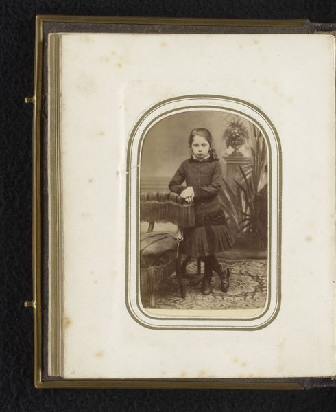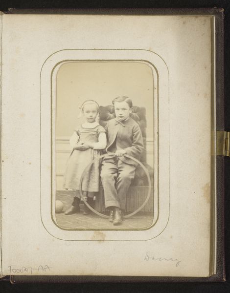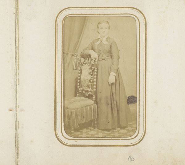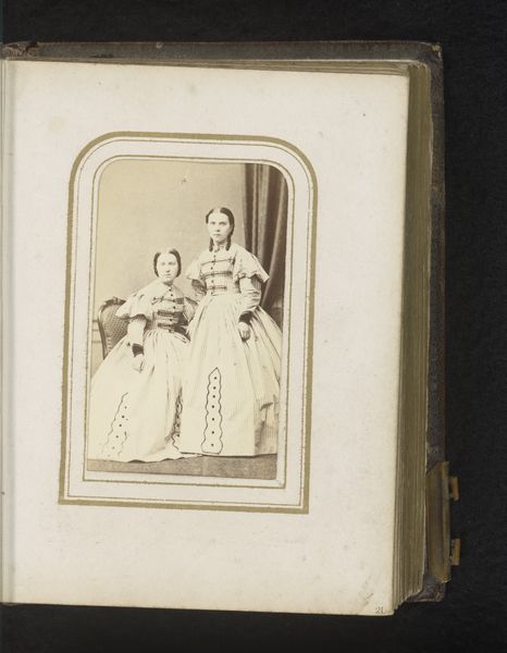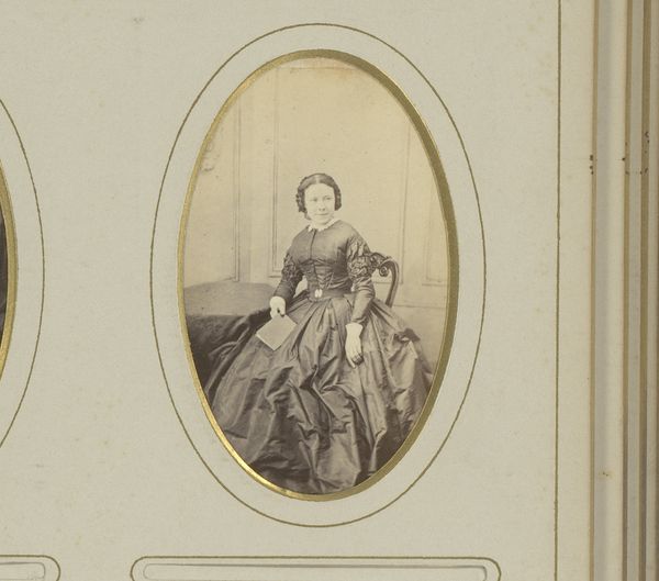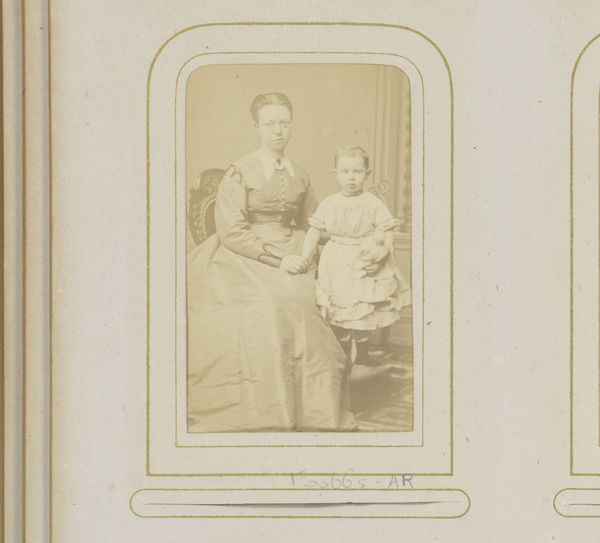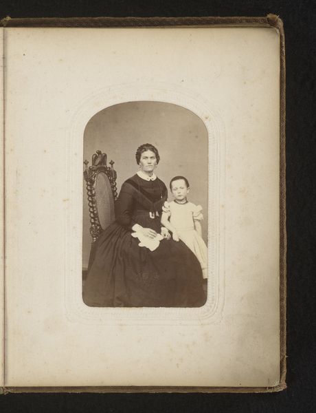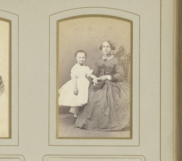 This is a photographic portrait by J. Bourens, capturing a seated woman with two children. The print itself is a chemical alchemy, an image conjured through light-sensitive materials. Photography in this period, especially portraiture, was a booming industry. It democratized image-making, but also relied heavily on specialized labor. The photographer, like Bourens, was a skilled technician, part artist, part entrepreneur. The subjects' clothing is significant, too. The matching plaid dresses suggest a certain level of middle-class affluence, a deliberate presentation of family unity and prosperity. Consider the labor involved in producing these textiles: from growing the raw materials to weaving and tailoring. Each garment represents a complex web of production and consumption, mirroring the photographic process itself. The photograph is not just an image, but a material artifact, deeply enmeshed with the social and economic conditions of its time. It prompts us to consider the many hands involved in its making, and the stories it silently tells about labor, class, and aspiration.