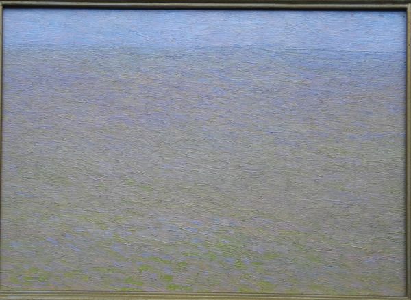 Hryhorii Havrylenko made this landscape painting, part of a triptych, with oil. It looks like he was really thinking through his process. There’s something beautiful about the surface here. The paint isn’t too thick, but you can still see the marks – tiny little brushstrokes that build up to create fields and sky. You can almost feel the texture, like rough fabric. The color is muted, mostly blues and greens, which gives it a kind of melancholic feel. Look at how the colors blend in the foreground, like a hazy memory. It makes you wonder what the other paintings in the triptych look like, and how they work together. This reminds me of some of Milton Avery's landscapes, where he simplified everything down to the bare essentials. Like Avery, Havrylenko shows us that sometimes less really is more. It’s a reminder that art is a conversation between artists, across time.