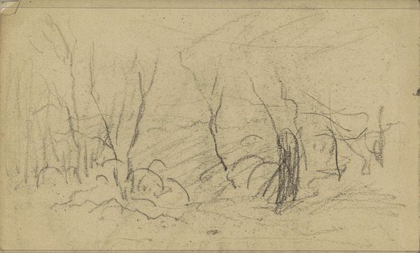 Editor: Here we have "Landschap" by Anton Mauve, made sometime between 1848 and 1888. It's a pencil drawing currently held at the Rijksmuseum. There's something very raw and immediate about the sketch; the scene is only barely defined. What can you tell me about it? Curator: Well, seeing as it's housed in the Rijksmuseum, we should place it in the context of 19th-century Dutch art. Mauve was a prominent figure in the Hague School. This sketch, though seemingly simple, reflects the movement’s focus on capturing the atmosphere and rural life of the Netherlands, away from the academic styles prevalent at the time. Notice how the sketch, although fleeting, emphasizes the textures and shapes of nature. Does it remind you of anything? Editor: I suppose it has the same subdued palette as other Hague School artists. But I would almost call this Realism. It's so immediate, so unrefined. Do you think this was intended as a finished work? Curator: That's a great question. Given the period, it's likely a study. Artists often sketched outdoors, *en plein air*, as preparation for larger paintings. Consider this a form of visual note-taking, directly influenced by the burgeoning Realist movement. Mauve likely aimed to record specific elements or atmospheric conditions to bring back to the studio. The sketch also reveals the artist's hand and thought process; what he deemed most important to capture in that fleeting moment. The trees, for instance. They’re gestured with a distinct, rhythmic energy, giving weight to the landscape. Editor: So, in a way, even a seemingly unfinished sketch provides insight into artistic practice and the broader art world? Curator: Exactly. It offers a glimpse into the artist's intentions and how artistic movements adapted to cultural and social changes of the era. By considering where art is made and housed we can learn even more. Editor: That's amazing. I never considered the socio-political weight of a sketch like this before.