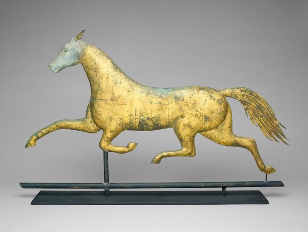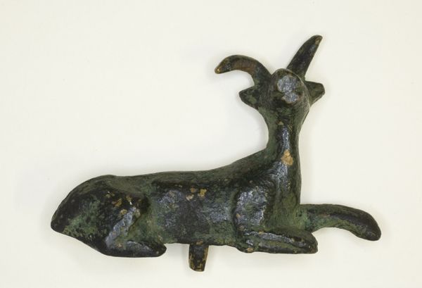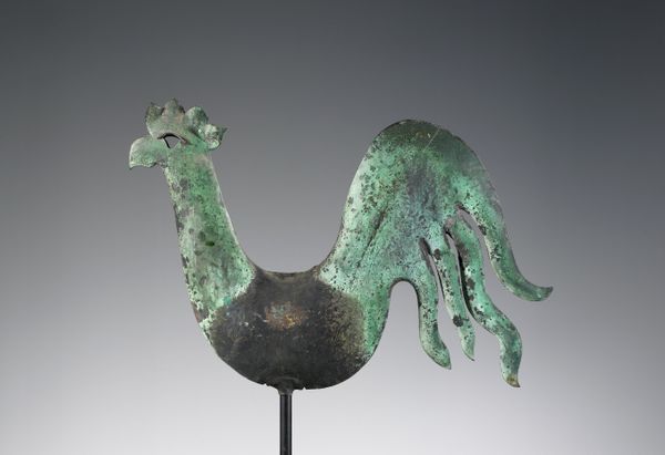 Editor: So, this is the bronze sculpture "Dog," dating back to around 206-220, from the Ordos culture. I’m struck by its stillness; it feels like it's been watching and waiting for centuries. What can you tell me about it? Curator: That sense of watchful stillness is fascinating, especially when we consider the potential role dogs played in Ordos society. Dogs weren't just pets, but active participants in nomadic life, integral to hunting and guarding. Can we therefore consider how this small statue could embody power relationships in Ordos society? Editor: Power relationships? How so? Curator: Well, consider this. Dogs, loyal and subservient, served a vital purpose, reflecting and reinforcing a hierarchical structure within the community. Its very presence hints at the intersection of human control and the natural world, perhaps symbolizing authority and status. Does that change your perception? Editor: Definitely. It shifts it from a simple depiction of an animal to a statement about societal roles and the control of nature. It's like the sculpture itself is a little piece of propaganda! Curator: Precisely. This wasn’t simply art for art's sake, but imbued with meaning relevant to their everyday lives. Understanding that historical context, even with something as seemingly simple as a dog figurine, really opens up a broader conversation. What did you learn from this dialogue? Editor: That approaching art with a critical eye toward its societal context allows a better grasp of what it stood for and still stands for today. Curator: It encourages a deeper reading, which I believe, moves us beyond aesthetic appreciation and into the complex narratives of the past.