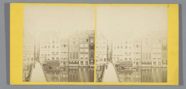 Editor: This is "Gezicht op de Oudegracht met de Dom en de Bakkerbrug, Utrecht," a photograph by Pieter Oosterhuis, dating from around 1855 to 1865. It's a stereoscopic daguerreotype of a cityscape. It's incredible to see such detail in such an old photograph! How would you approach interpreting this piece? Curator: Considering the daguerreotype medium, we must ask what this material represents socially and economically. Photography democratized image-making, challenging the dominance of painting as a luxury good, did it not? Its labor-intensive process also merits consideration. What were the working conditions for Oosterhuis? Editor: That’s a really interesting point; I hadn’t thought about the physical process so much. Curator: The scene itself invites questions too. The Bakkerbrug – baker's bridge, it’s called, and the Dom tower both imply commerce and labor. Consider how the bridge functions not only to literally connect things, but as a conduit for social exchange. Notice too how the material limitations of early photography impact what is depicted – or perhaps more accurately, what *could* be depicted. Think of the exposure times. Did they influence which subjects were deemed most ‘suitable’? Editor: So, the technical constraints shaped artistic choices. Were subjects chosen simply because they were stationary? Curator: Precisely! And if we read the city itself as a material entity – built with brick and stone, reflecting cycles of labor and consumption, the image serves as a document of this transformation, also! It shows the structures shaped by material realities, as well as people shaping the structures themselves. Editor: That makes me see the photograph as much more than just a pretty cityscape. It's like a snapshot of production. I'll think more about process going forward. Thanks! Curator: And I'll remember the significance of subject-selection pressures! Every image conceals decisions about what—and who—remains unseen, a product of available materials and modes of production.