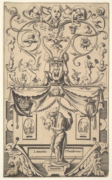 Theodor de Bry created this ornamental border, sometime in the late 16th century, using etching. During this period, the power and projection of European identity was disseminated through printed images. De Bry, a skilled engraver, had to flee his native land due to religious persecution. He eventually settled in Frankfurt, a center of the printing trade. His personal history undoubtedly influenced his artistic output, particularly his documentation of the customs and lifestyles of people from around the world. The border's design incorporates classical motifs alongside images of power and conquest. Figures, framed by dense foliage, evoke a sense of both abundance and control, hinting at the complex relationship between the colonizer and the colonized. It served as a frame for displaying texts or images, often perpetuating the era's dominant narratives. It's a reminder of how art can be both beautiful and deeply implicated in systems of power.