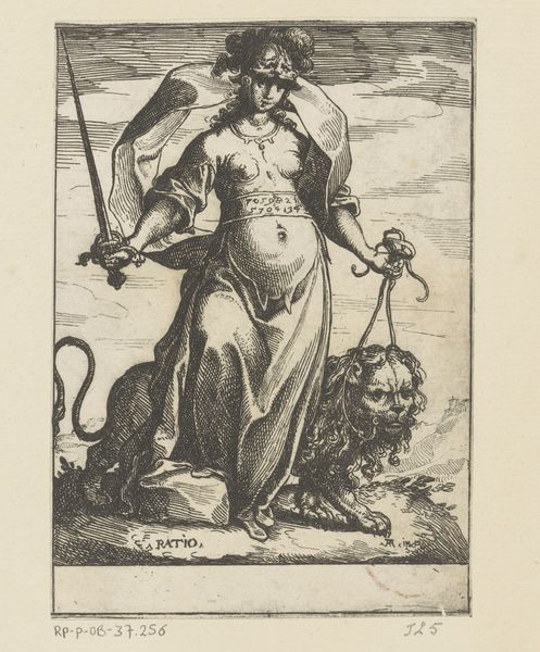 Anton Eisenhoit created this engraving, titled "Heresis Dea," presumably in Germany, around the late 16th century. In it, heresy is allegorically presented as a goddess, but one that is impure and monstrous. The image creates meaning through a series of visual and cultural cues. The figure is semi-nude, with a grotesque combination of animal and human features, standing on and next to mythical beasts. She is loaded with negative attributes, all intended to communicate the dangers of straying from religious orthodoxy. The architectural background and Latin text reflect the institutions of power at this time. In the wake of the Reformation, the religious, social, and political orders of Europe were in turmoil, and this image is an example of the ways that art was used to support the forces of conservatism. Sources in historical theology and the history of political thought would shed more light on this image and the social context in which it was made.