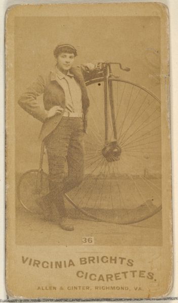 This is a card from the Girl Cyclists series, made for Virginia Brights Cigarettes by Allen & Ginter. The high-wheel bicycle, with its precarious balance and daring rider, is more than a mere vehicle; it’s a symbol of modernity and liberation. Note the confident posture of the cyclist. This reflects a broader cultural shift in the late 19th century, as women sought new freedoms and challenged traditional roles. Consider how the wheel itself has been a recurring symbol throughout history, from ancient sun-god representations to the cycles of life and death. The bicycle wheel adds a new layer, embodying progress, speed, and the exhilaration of movement. This image taps into a primal desire for forward motion, evoking a sense of adventure and breaking free from constraints. As you gaze upon this small card, reflect on the enduring power of symbols to capture our imagination and connect us to both the past and the future.